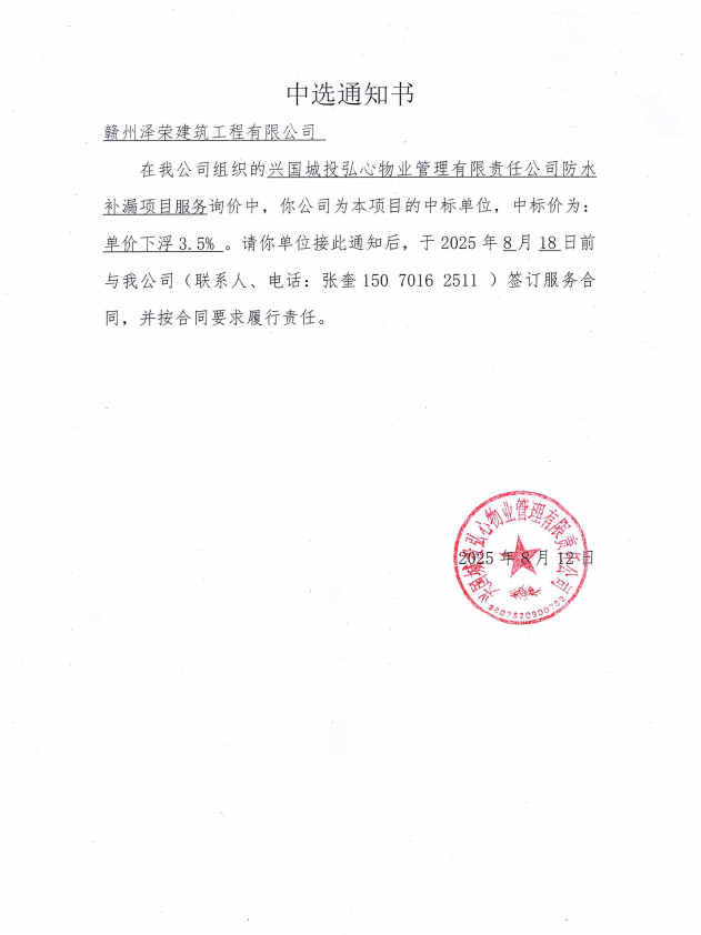 中选通知书-结果公告-兴国城控